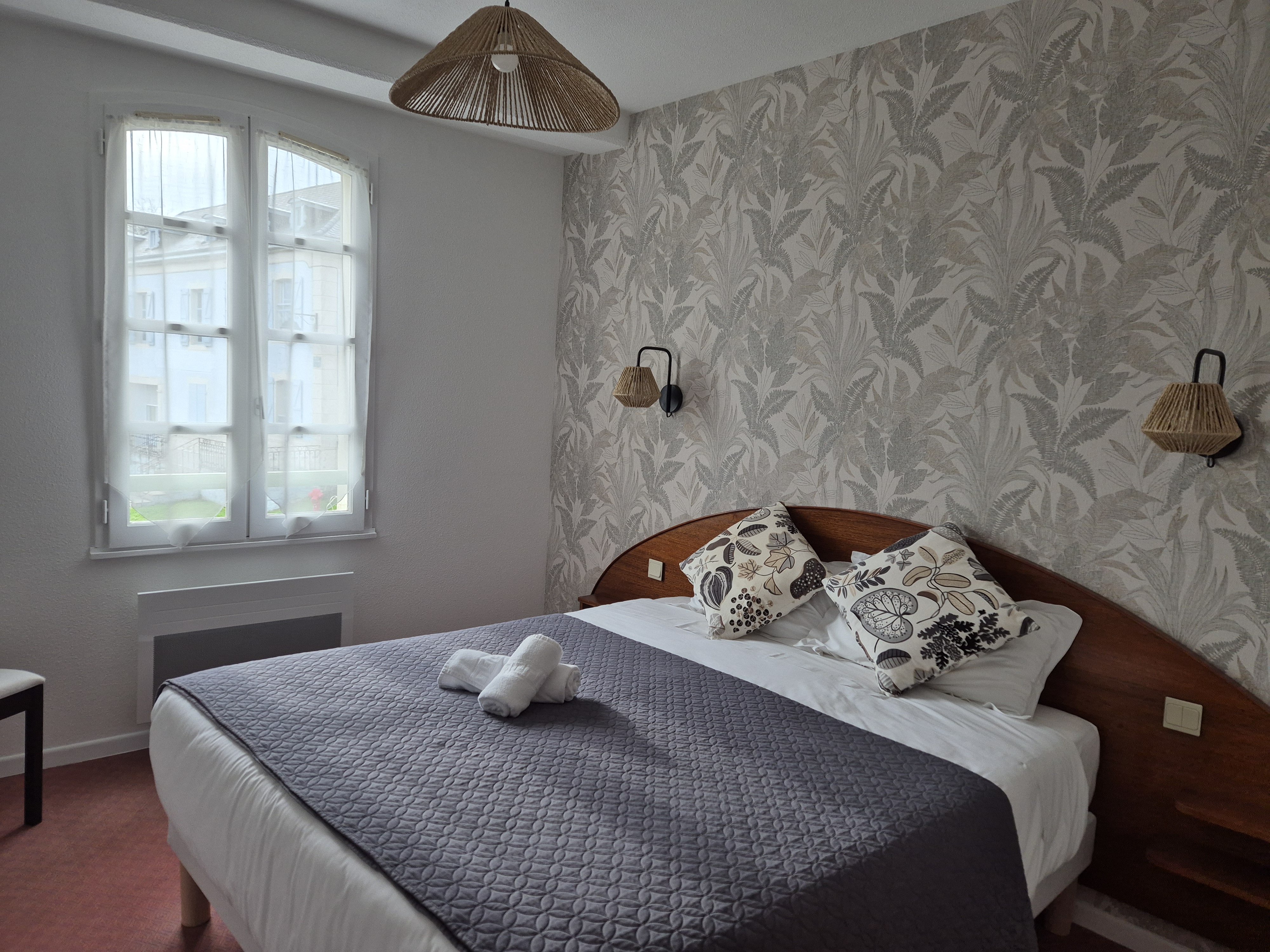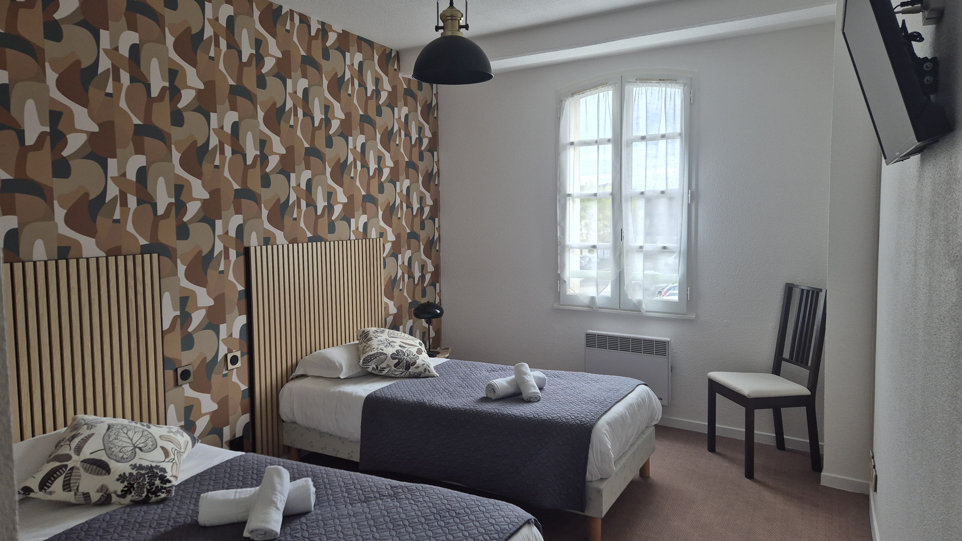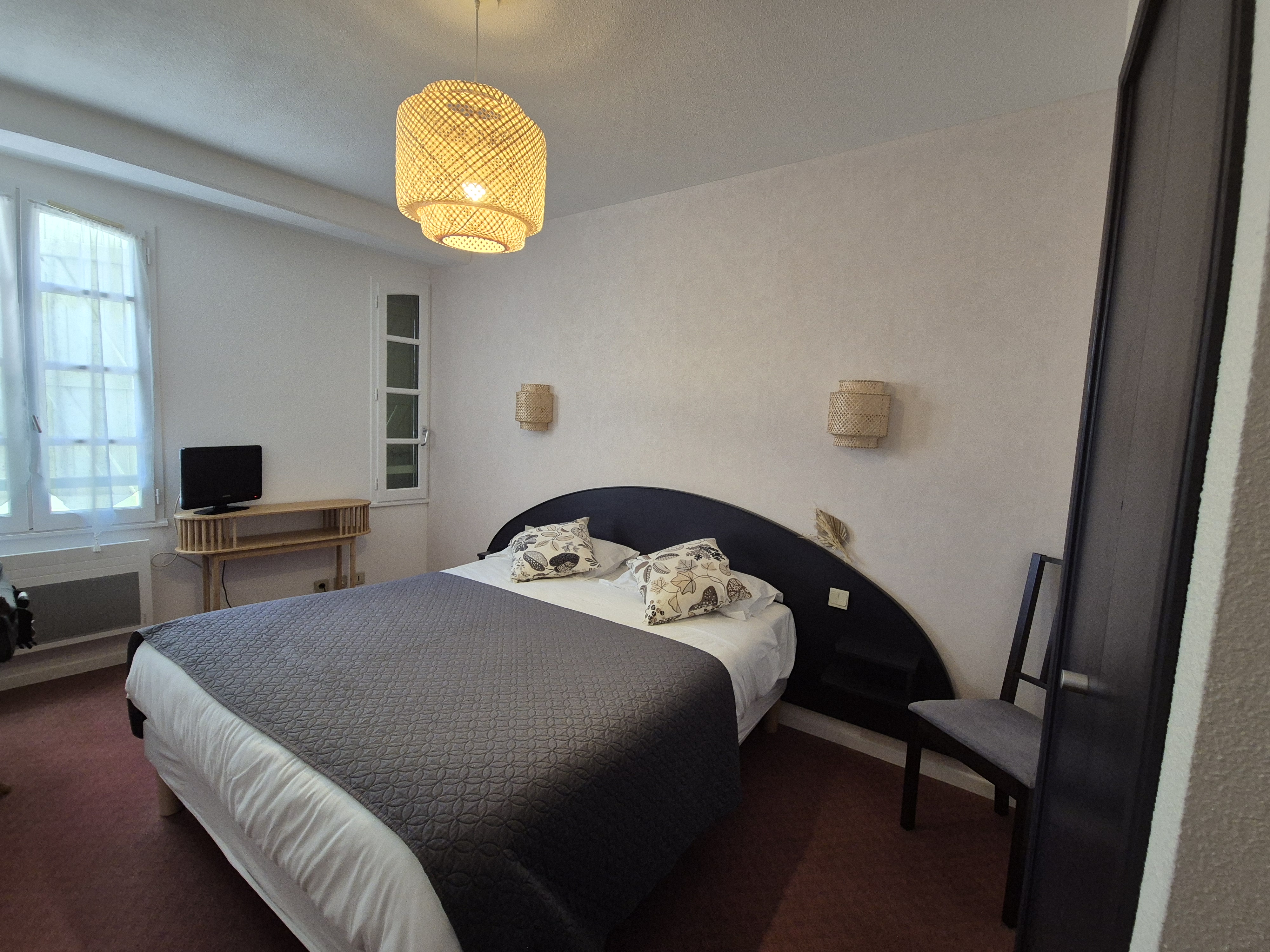 Nous disposons de 14 chambres simples, doubles et triples. Toutes sont équipées du nécessaire à votre confort : douche, WC et télévision sont présents dans toutes les chambres.